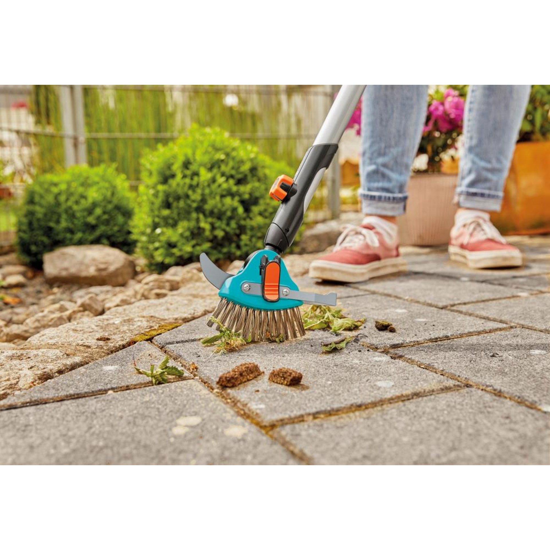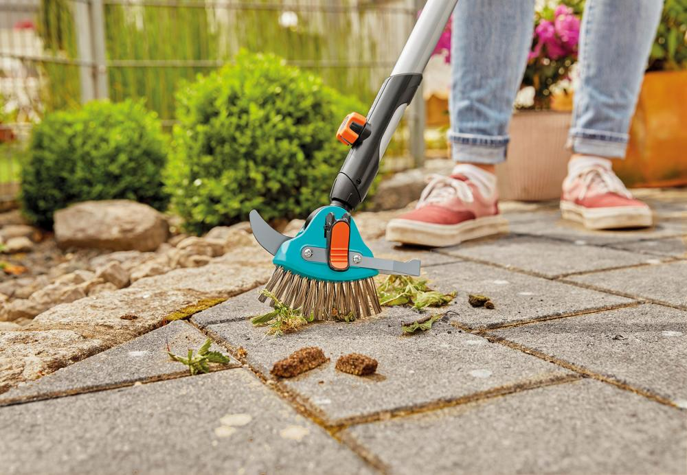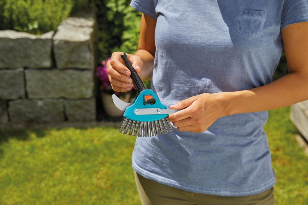 • Metallborsten dienen zur Entfernung von Moos und zum Zusammenkehren des entfernten Unkrauts
