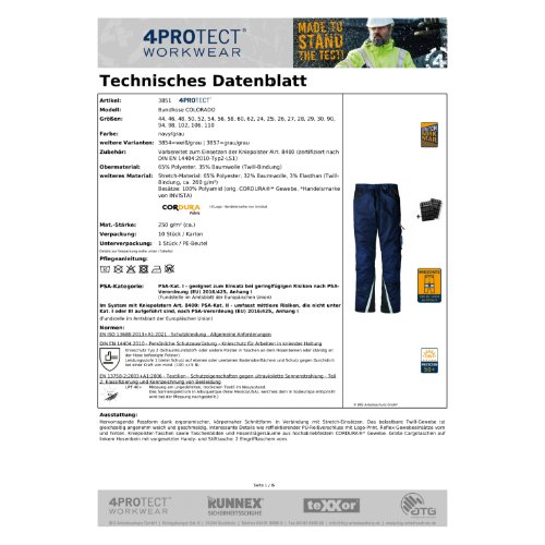 Eigenschaften "4PROTECT® Bundhose COLORADO 54, navy/grau"