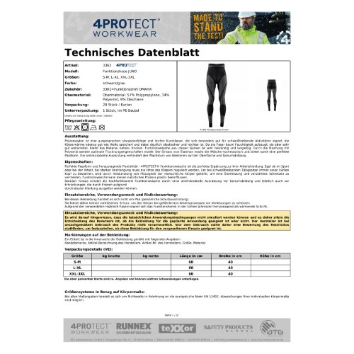 Eigenschaften "4PROTECT® Funktionshose JUNO L-XL, schwarz/grau"