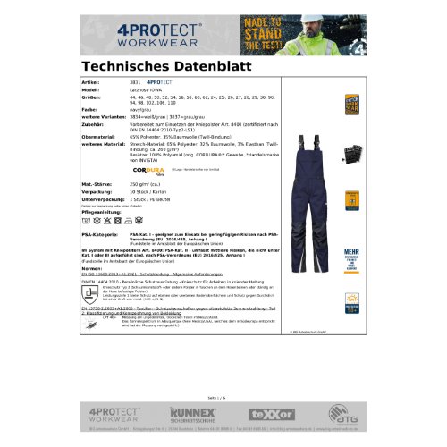 | Normen: | EN ISO 13688:2013, EN 13758-2:2003+A1:2006, EN 14404:2004+A1:2010 |