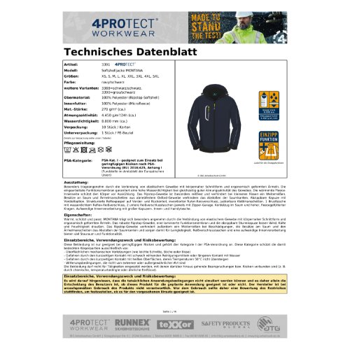 Eigenschaften "4PROTECT® Softshelljacke MONTANA 3XL, navy/schwarz"