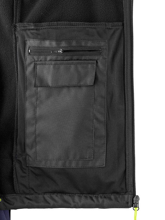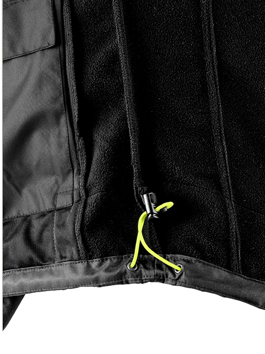 Besonders trageangenehm durch die Verbindung von elastischem Gewebe mit körpernaher Schnittform und ergonomisch geformten Ärmeln. Die eingearbeitete Funktionsmembran garantiert eine hohe Wasserdichtigkeit bei gleichzeitig guter Atmungsaktivität des Gewebes. Die wärmende Fleece-Innenseite schützt den Körper vor Auskühlung. Das Ripstop-Gewebe ist besonders reißfest und verhindert bei kleineren Rissen ein Weiterreißen. Besätze an Saum und Ärmelmanschetten aus abriebfestem Oxford-Gewebe.