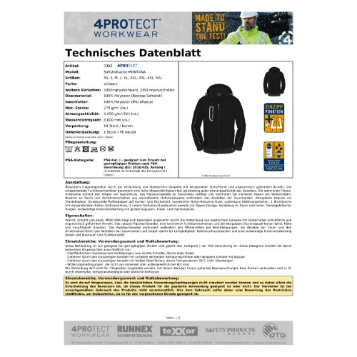 Eigenschaften "4PROTECT® Softshelljacke MONTANA XXL, schwarz"