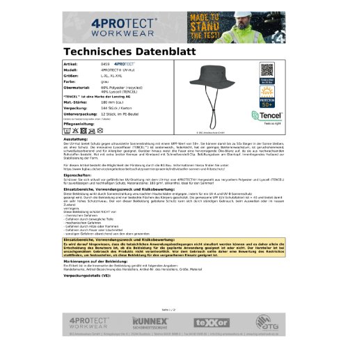 Eigenschaften "4PROTECT® UV-Schutz-Hut XL/XXL, Grau"