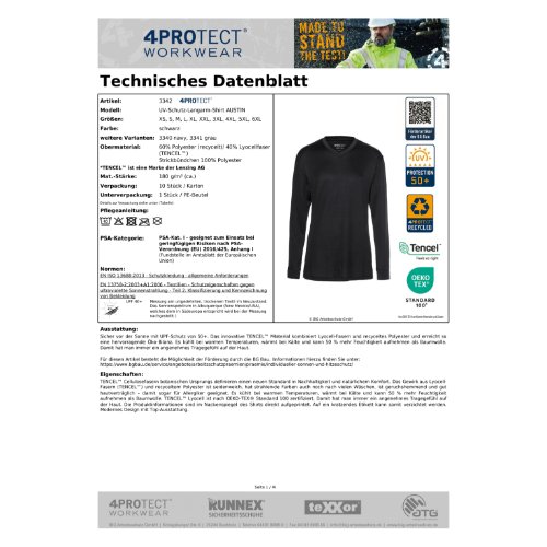 Eigenschaften "4PROTECT® UV-Schutz-Langarm-Shirt AUSTIN L, schwarz"