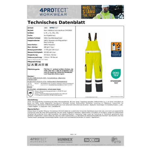 | Normen: | EN ISO 13688:2013, EN ISO 20471:2013, EN 343:2019 |