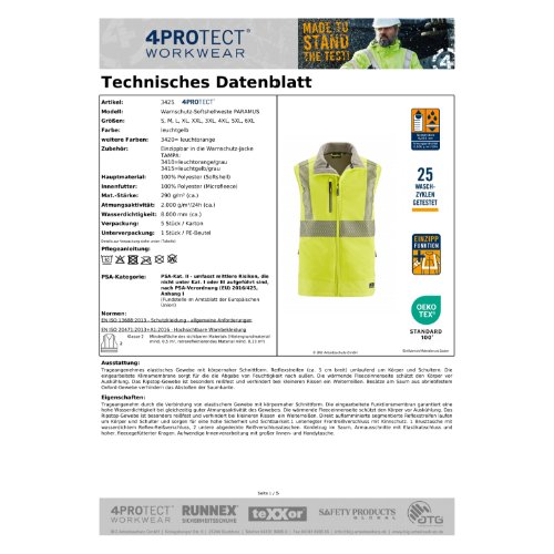 | Normen: | EN ISO 13688:2013, EN ISO 20471:2013+A1:2016 |