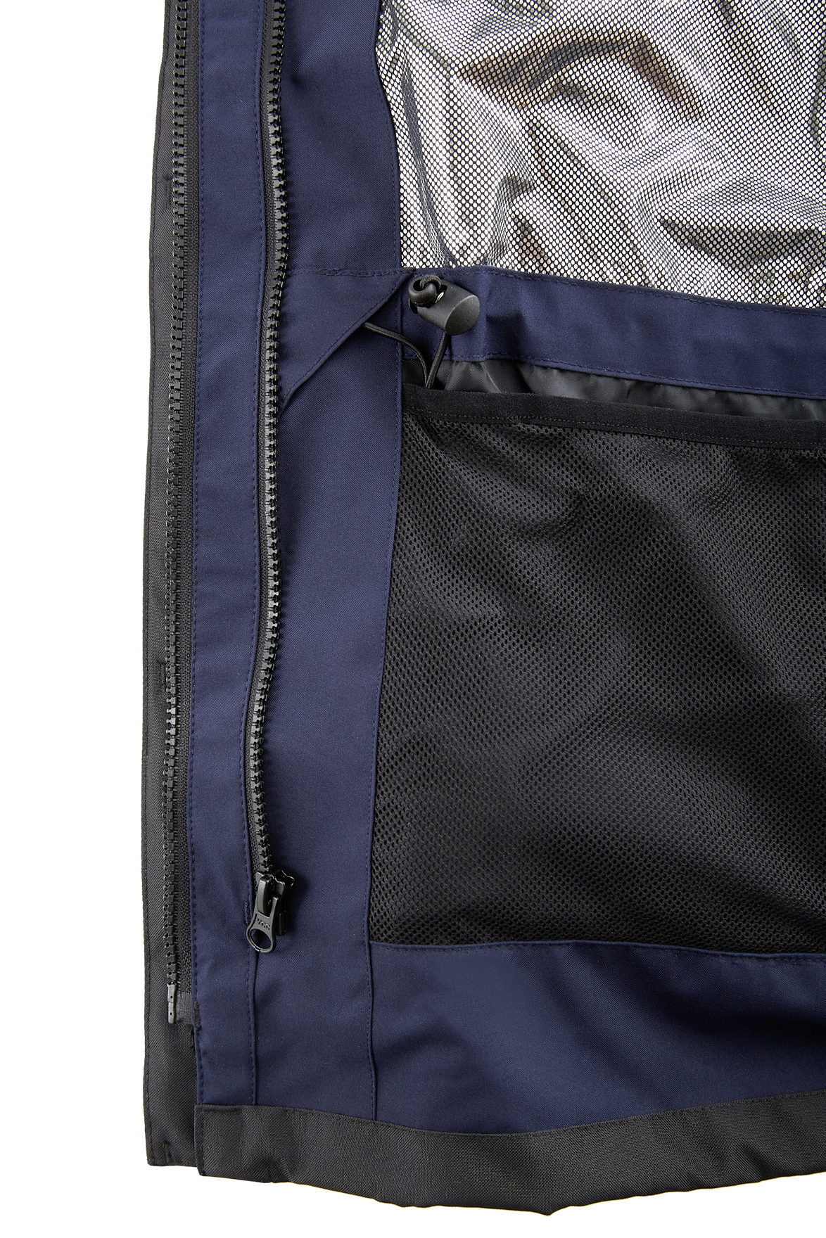 Wind- und wasserdichte Ausstattung bei hoher Atmungsaktivität ermöglichen eine lange Tragedauer. Weitenverstellung in Taille und Saum, doppelt abgedeckter Front-Reißverschluss, abzippbare Sturmkapuze mit diversen Verstell Optionen. 4 Außentaschen mit wasserdichten Reißverschlüssen und Zipper-Garage sowie 1 Napoleon-Tasche mit abnehmbarem Schlüsselband. Im Futter 1 Brust- und 1 große Tasche für Kapuze, sowie Service-Reißverschluss zum einfachen Bedrucken.