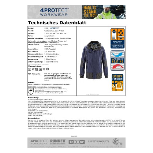 Eigenschaften "4PROTECT® Wetterschutz-Jacke PHILLY 5XL, navy/schwarz"