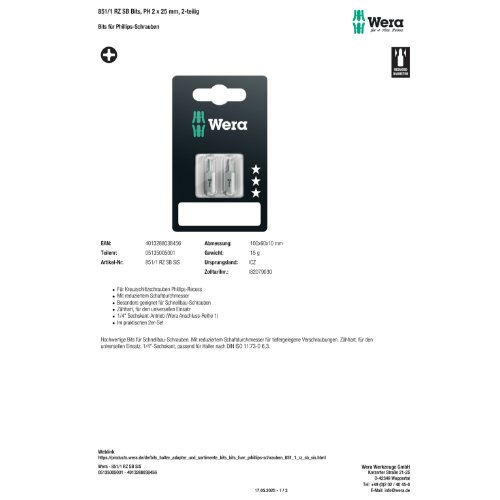 Variante: | Wera 851/1 RZ SB Bits, PH 2 x 25 mm, 2-teilig |