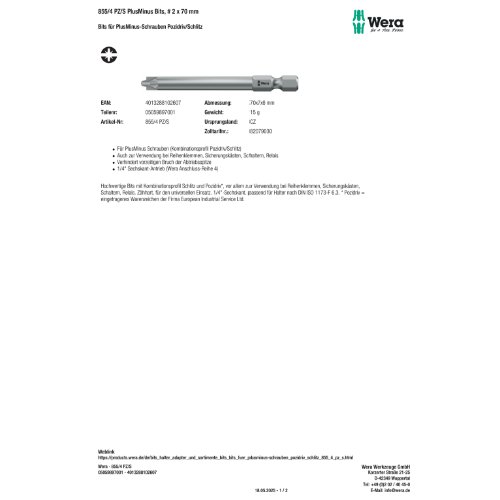 242068, buckeye, 4013288102607, bits, aeg, copco, bit, Pozidriv, biax, Schraubendrehereinsatz, Bit, Wera, 855/4 PZ/S PlusMinus Bits, # 2 x 70 mm, black&decker, 05059897001, Sechskant, Pluminus, zähhart, aro, bosch, pozidriv, universal, Schlitz, atlas, 1/4"