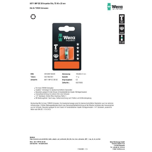 Variante: | Wera 867/1 IMP DC SB Impaktor Bits, TX 40 x 25 mm |