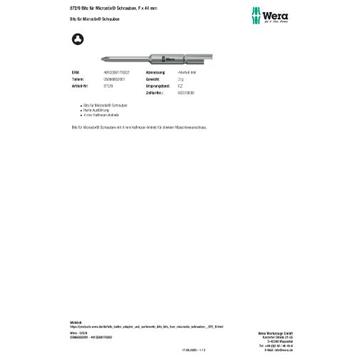 Variante: | Wera 872/9 Bits für Microstix Schrauben, F x 44 mm |