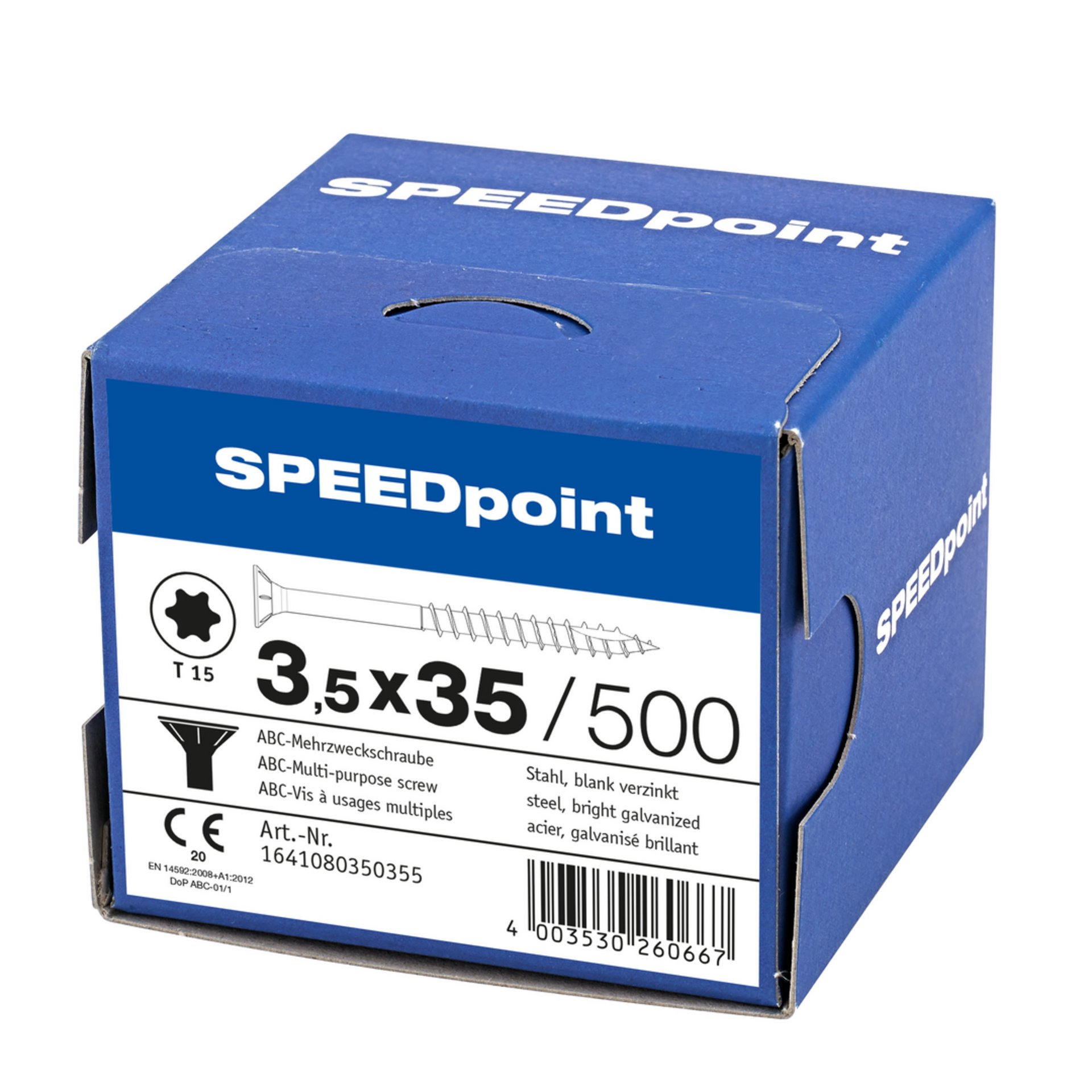| Variante: | SPAX SPEEDpoint Senkkopf T15 Teilgewinde Schabenut A2J 3,5x35mm (500) |