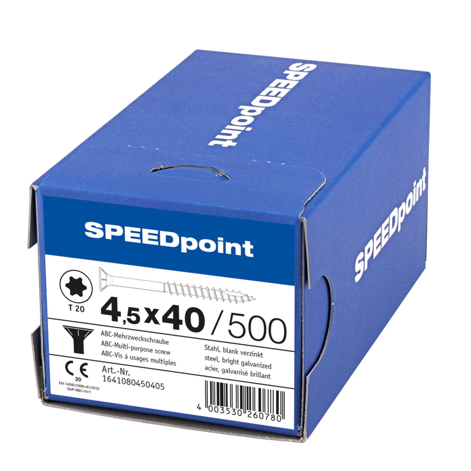 | Variante: | SPAX SPEEDpoint Senkkopf T20 Teilgewinde Schabenut A2J 4,5x40mm (500) |