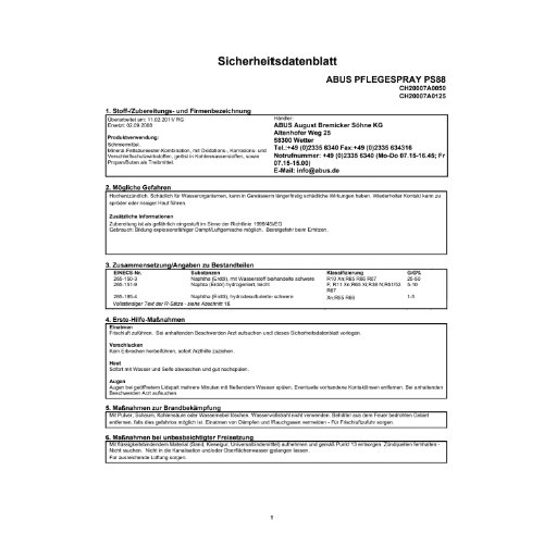 Eigenschaften "ABUS Pflegespray VK PS88 300ml D"
