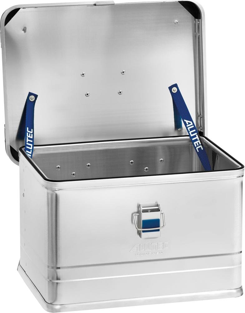Transportkiste aus Aluminium, Serie INDUSTRY Diese unverwüstliche extrastabile Transportbox ist für den Einsatz in Handwerk und Gewerbe. Ideal zur Aufbewahrung wertvoller Güter. • Korrosions-, witterungs- und temperaturbeständig • Klappdeckel: mit zwei Fangbändern • Sicherheitshandgriffe: selbsteinklappend, kunststoffummantelt • Klapphebelverschlüsse: mit Bohrungen für Vorhängeschloss oder Plombenverschluss oder zum Nachrüsten von Zylinderschlössern (siehe Zubehör) • Inhalt: staub- und spritzwassergeschützt durch umlaufende Gummidichtung im Kastenprofil • Mit extrem robusten Alu-Gussecken Hersteller: ALUTEC MÜNCHEN GmbH, Am Haag 10, 82166 Graefelfing, DE, +498954244990, info@alutec.net