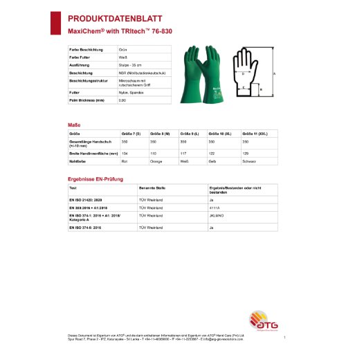 Eigenschaften "ATG® MaxiChem® Chemikalienschutz-Handschuhe (76-830) 8, grün/grün"
