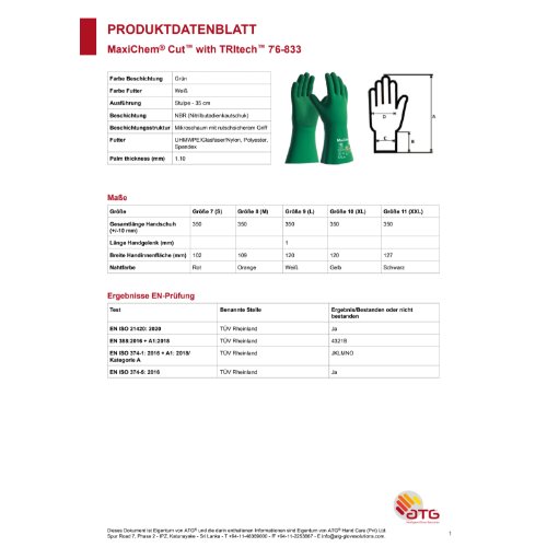 Eigenschaften "ATG® MaxiChem® Cut™ Chemikalienschutz-Handschuhe (76-833) 9, grün/grün"