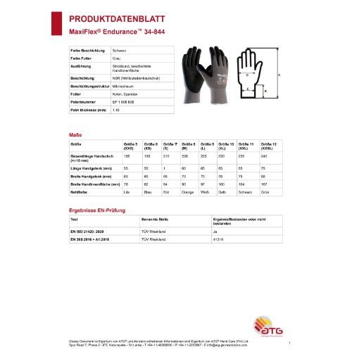 Eigenschaften "ATG® MaxiFlex® Endurance™ Nylon-Strickhandschuhe (34-844) 12, grau/schwarz"