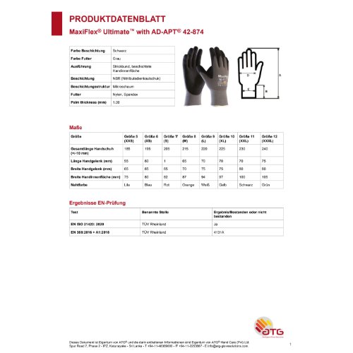Eigenschaften "ATG® MaxiFlex® Ultimate™ AD-APT® Nylon-Strickhandschuhe (42-874 HCT), SB-Verpackung 12, grau/schwarz"