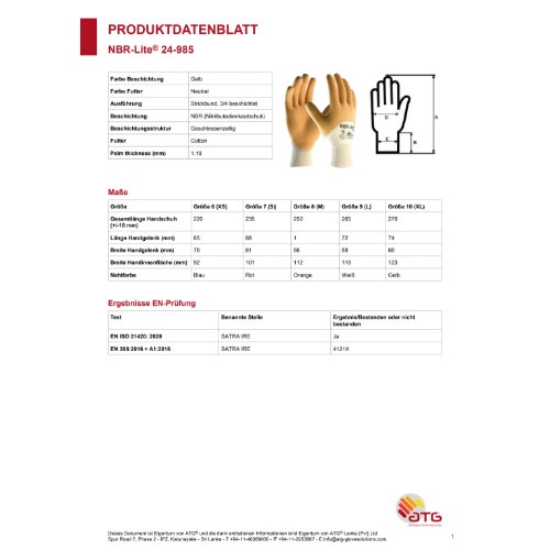 Eigenschaften "ATG® NBR-Lite® Nitril-Handschuhe (24-985 HCT), SB-Verpackung 9, beige/gelb"