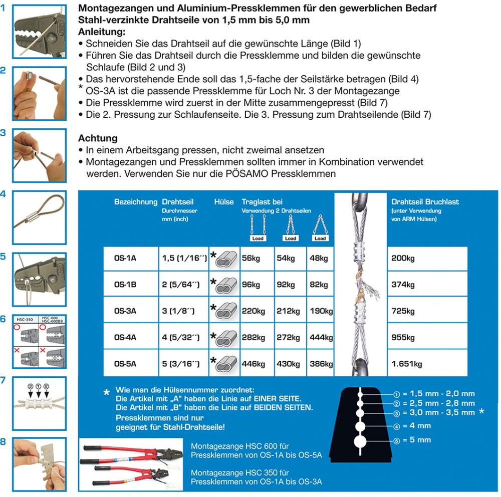 Sicherheitspressklemme • Aluminium, blank • Für nicht ummantelte Drahtseile von 1,5 mm bis 5,0 mm Hersteller: Monheimer Ketten- u. Metallwarenindustrie, Frohnstraße 44, 40789 Monheim, DE, +49217339760, info@poesamo.de