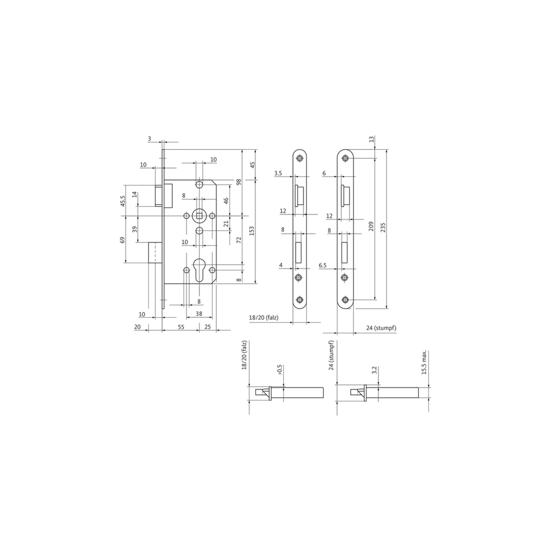 | Variante: | BKS Einsteckschloss Kl.2, PZW, 55/72/8, Ni-Stulp ktg. 24x235 mm, links |