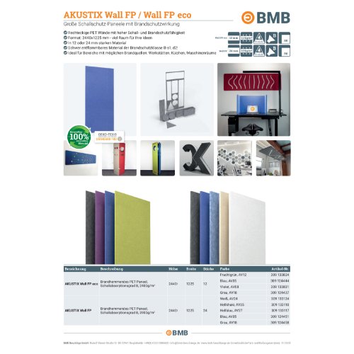 Eigenschaften "BMB AKUSTIX Wall FP eco, HxBxS: 2440x1220x12 mm, feuerfest,Violet, AV08"