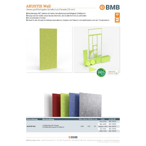 Eigenschaften "BMB AKUSTIX Wall, HxBxS: 2440x1220x18 mm, Grau, AV18"