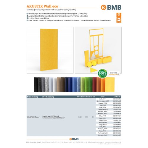 Eigenschaften "BMB AKUSTIX Wall eco, HxBxS: 2440x1220x12 mm, Braun, AV39"
