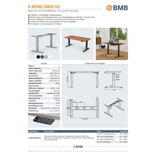 Eigenschaften "BMB E-MORE 2M3S GS, RAL 7016, Anthrazit"