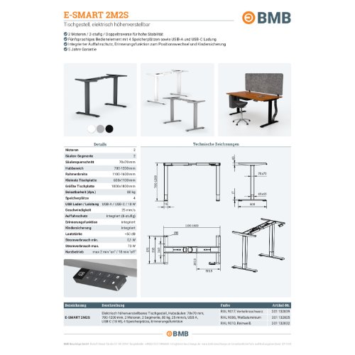 Produktinformationen "BMB E-SMART 2M2S, Verkehrsschwarz, RAL 9017"