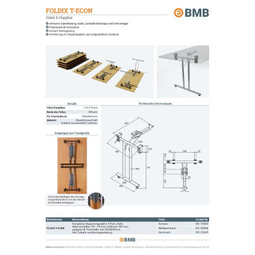 | Variante: | FOLDIX T-ECON Klapptisch-Gestell, Oberfl. verchromt |
