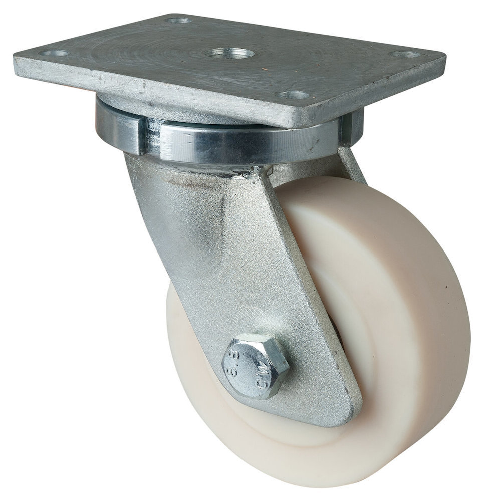 Schwerlastrolle RR100.B16.151, Produkttyp: Lenkrollen, Ø Schraubloch: 12 mm, Radkörper: Polyamid gegossen, Schraublochentfernung: 140x105 mm, Plattengröße: 175x140 mm, Ø Rad: 150 mm, Tragkraft: 2000 kg, Lauffläche: Polyamid gegossen, Bauhöhe: 212 mm, Lager: Kugellager, Ausladung: 55 mm, Radbreite: 55 mm, Befestigungsart: Anschraubplatte