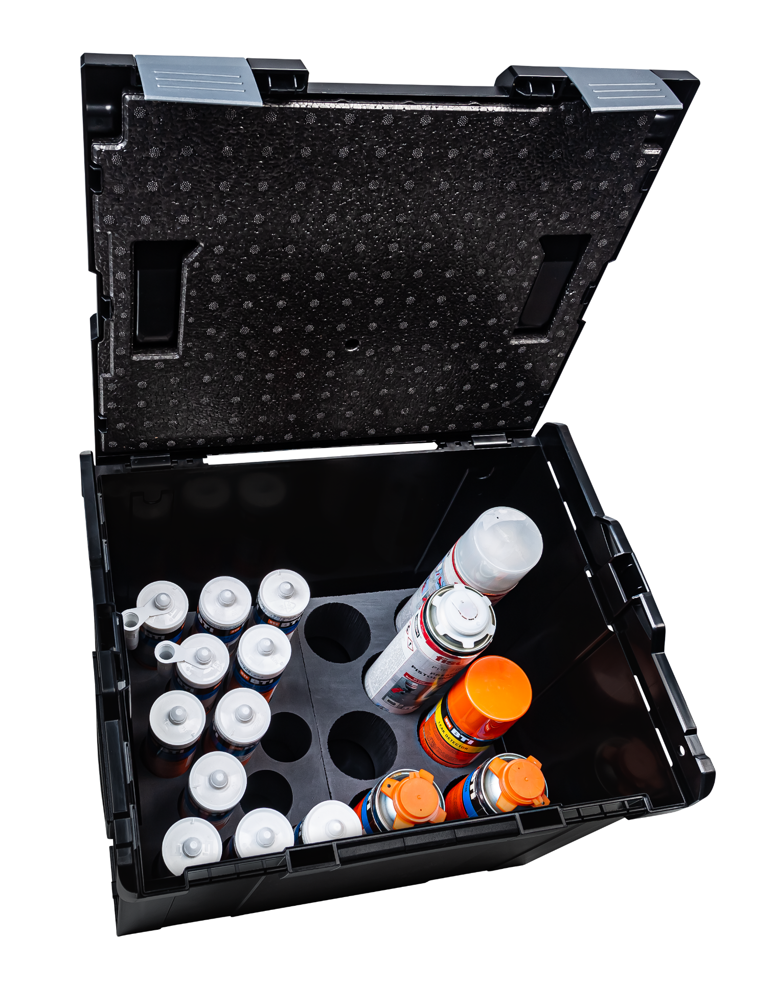 Schaumstoffeinsatz für 7 Schaum-Kartuschen(Ø = 73 mm). In die L-BOXX 374 passen 2 Einsätze. Der Schaum-Kartuscheneinsatz kann bei Bedarf mit dem Silikon-Kartuscheneinsatz kombiniert werden.