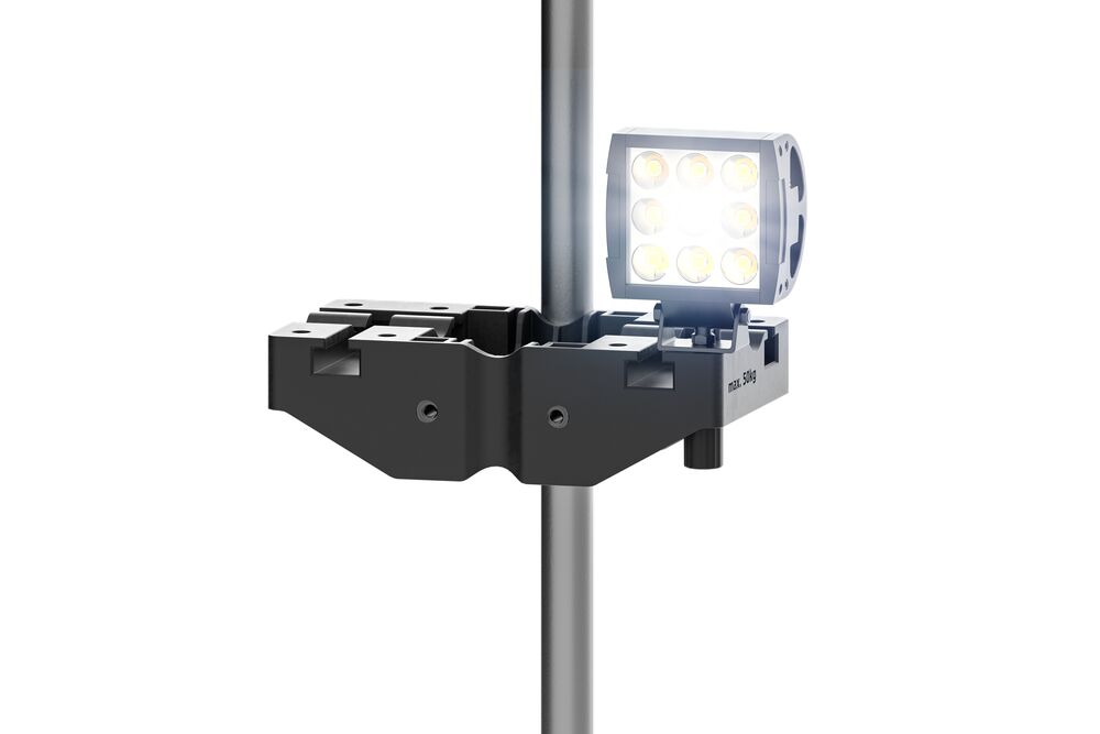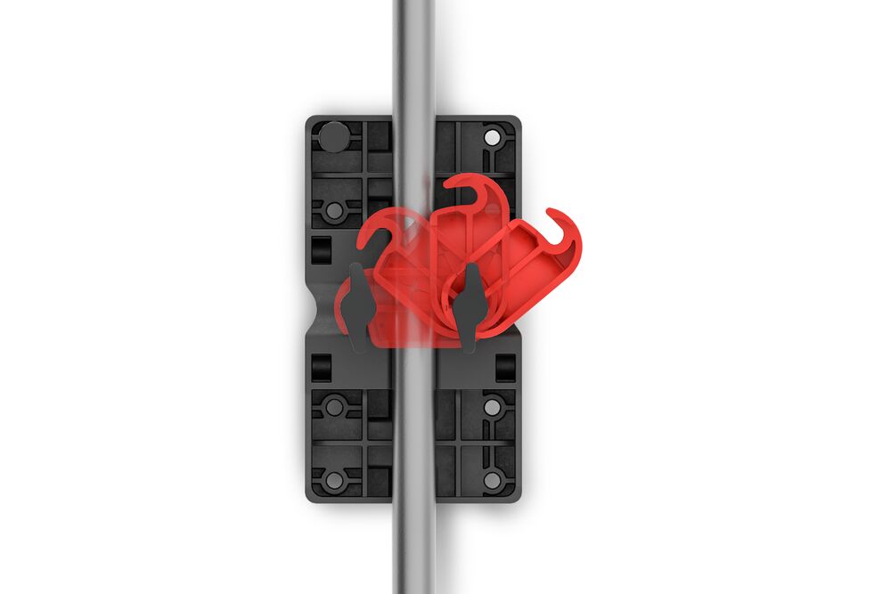 Multifunktionshalterung aus verstärktem PA6 Kunststoff Anlagefläche der Befestigungsschelle aus rutschfestem TPU Kunststoff Verbindungselemente/Flügelschrauben aus Stahl mit M6-Gewinde