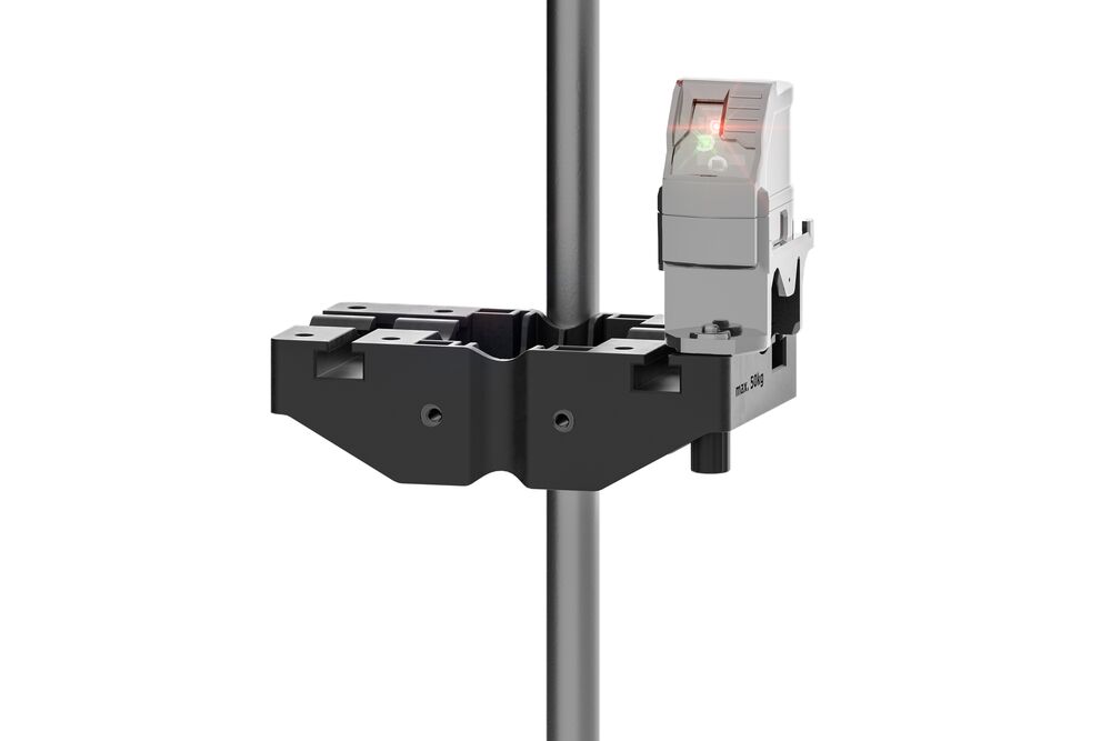 Dank der 1/4“ Gewindeaufnahme auch zum Fixieren von Hilfsmitteln wie Lasern (z.B. Stabila LAX 600G, Bosch GLL 3-80 CG), Kameras und Bauleuchten