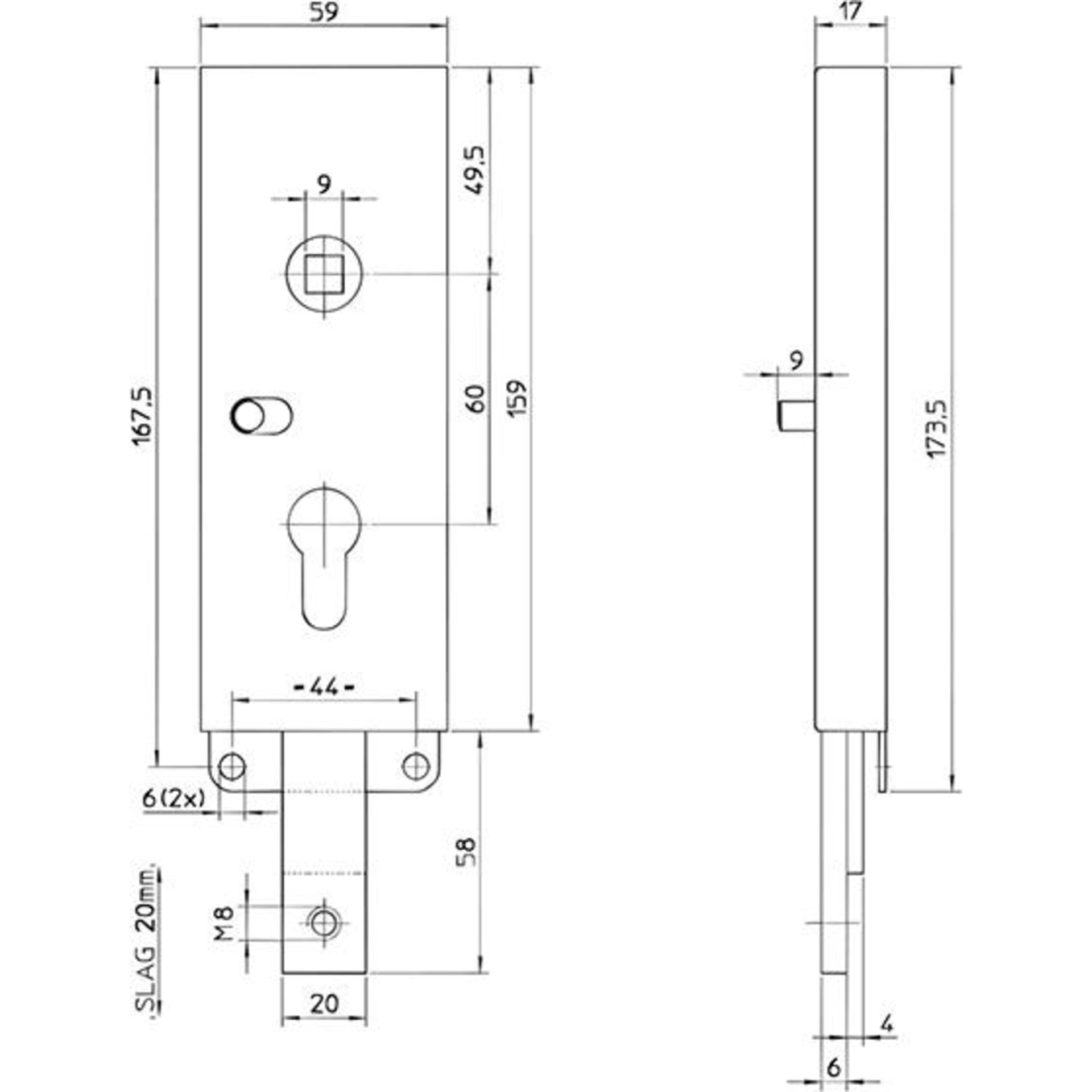 Produktinformationen "Bever Garagentor-Schloss 8002 PZ60/9 unten schl."