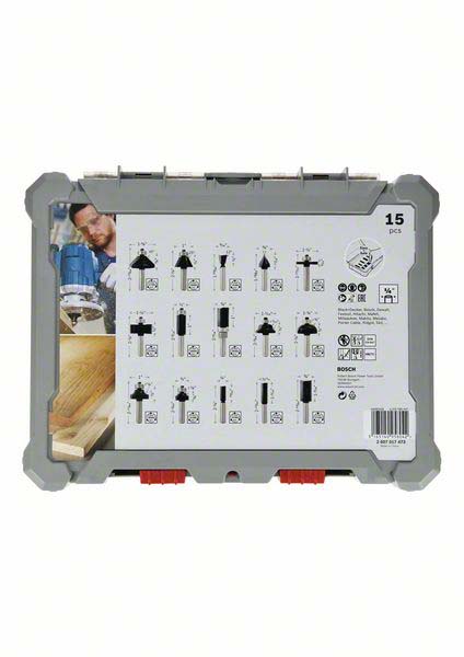 Eigenschaften "Bosch 15-teiliges Fräser-Set, 1/4-Zoll Schaft. Für Handfräsen"