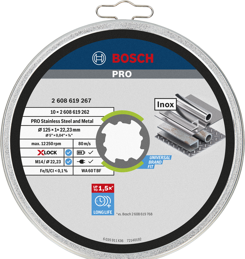 - Bosch PRO X-Lock Trennscheibe Ø 125 × 1,0 × 22,23 mm, gerade, oSa