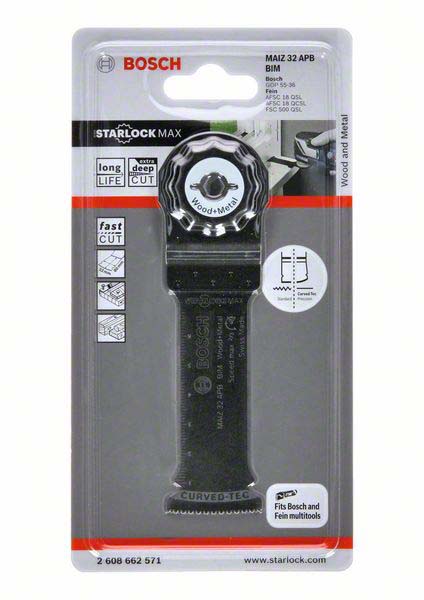 Das Tauchsägeblatt Starlock MAIZ 32 APB für besonders tiefe Schnitte in Holz und ungehärtetes Metall. Seine Länge von 80 mm erhöht die Reichweite für ausgedehnte Schnitte. Die direkte Kraftübertragung und das robuste Starlock-Aufnahmesystem reduzieren Lateralschwingung und ermöglichen längere präzise Schnitte. Mit diesen robusten Merkmalen ist dieses Produkt ideal geeignet für tiefe und breite Tauchschnitte in Holz Nägel, Holzbalken sowie zum Schneiden von ungehärteten Nägeln, Schrauben und Stahlprofilen kleinerer Abmessungen. Das Blatt durchsägt auch Holz, ungehärtetes Metall, Kunststoff, Paneele mit Kunststofflaminierung und Gipskartonplatten. Eine abgerundete Blattspitze (Curved-Tec) ermöglicht präzise und glatte Tauchschnitte. Die Bimetallverbindung aus Blatt aus HCS-Stahl (Stahl mit hohem Kohlenstoffgehalt) und Zähnen aus HSS-Stahl (Schnellarbeitsstahl) ist verschleiß- und hitzeresistent und garantiert dem Blatt beim Schneiden von ungehärtetem Metall und abrasivem Material eine hohe Lebensdauer. Das System Starlock Max ermöglicht selbst bei härtestem Einsatz maximale Schnitttiefe, Geschwindigkeit und Vielseitigkeit. Zusätzlich ermöglicht das Starlock-Aufnahmesystem schnellen Blattwechsel in drei Sekunden ohne Blattberührung. Das spezielle Starlock-Aufnahmesystem ermöglicht durch seine dreidimensionale enge Passung maximale Kraftübertragung zwischen Maschine und Zubehör. 0 x 32 mm, 1er-Pack
