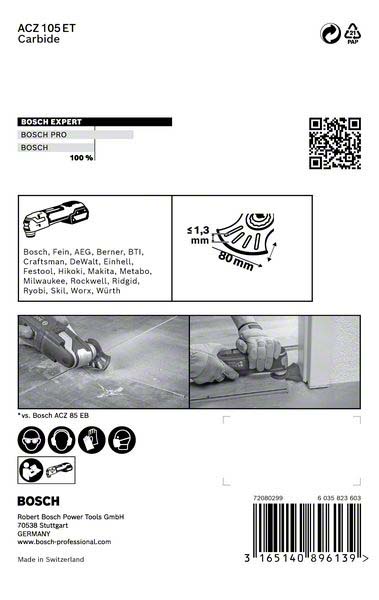 Lange Lebensdauer beim Schneiden von abrasivem Material und Verbundwerkstoffen! Dickeres Blatt für zusätzliche Robustheit und Stabilität. Auffälliger Zement hinter einem Türrahmen oder unter einer Diele brachte die Arbeit früher zum Stillstand, da ein teurer Blattwechsel vorgenommen werden musste. Mit dem EXPERT MultiMaterial Segment ist dies nicht mehr notwendig. Das Blatt ist robust genug, um Fugenmörtel und Mörtel sowie Arbeitsplatten mit fester Oberfläche und abrasive Laminate und Verbundwerkstoffe zu schneiden. Es macht einfach weiter. Das Bosch EXPERT MultiMaterial Segment Blatt für Multifunktionswerkzeuge ist ein weiterer Fortschritt in der Bosch Carbide Technology: Zum ersten Mal wurde ein großer gebogener Carbide-Streifen fest mit einem Blatt für Multifunktionswerkzeuge verschweißt. Es bietet die höchste Präzision und Lebensdauer unter den Segmentblättern. Überragende Lebensdauer dank Bosch Carbide Technology. Stück