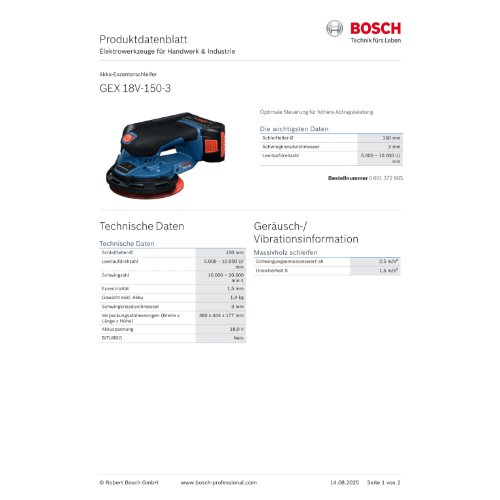 Eigenschaften "Bosch GEX 18V-150-3 solo, L-BOXX"