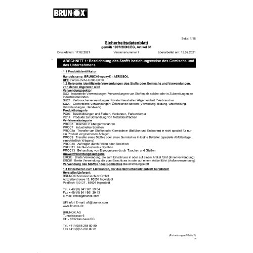 Hersteller: BRUNOX AG, Postfach 100127, 85001 Ingolstadt, DE, +49 8419612904, admin@brunox.swiss