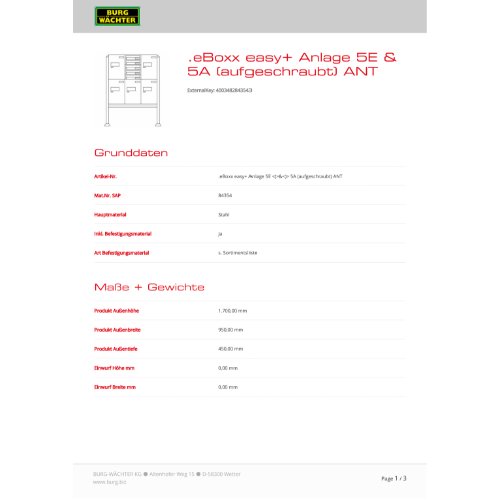 Eigenschaften "Burg-W Anlage Paketboxen mit 5 Boxen .eBoxx easy+ Anlage 5E & 5A (aufgeschrau"