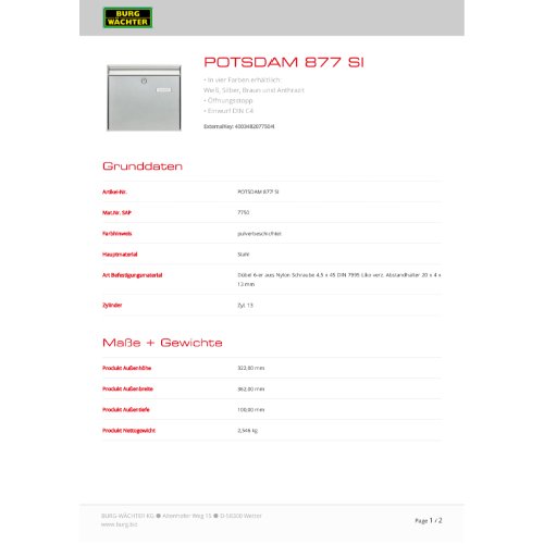 | Variante: | Burg-W Briefkasten Potsdam 877 Si |