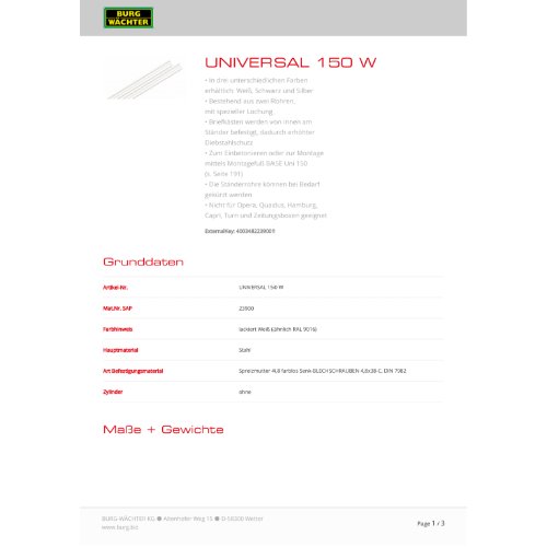Eigenschaften "Burg-W Briefkastenständer Universal 150 W"