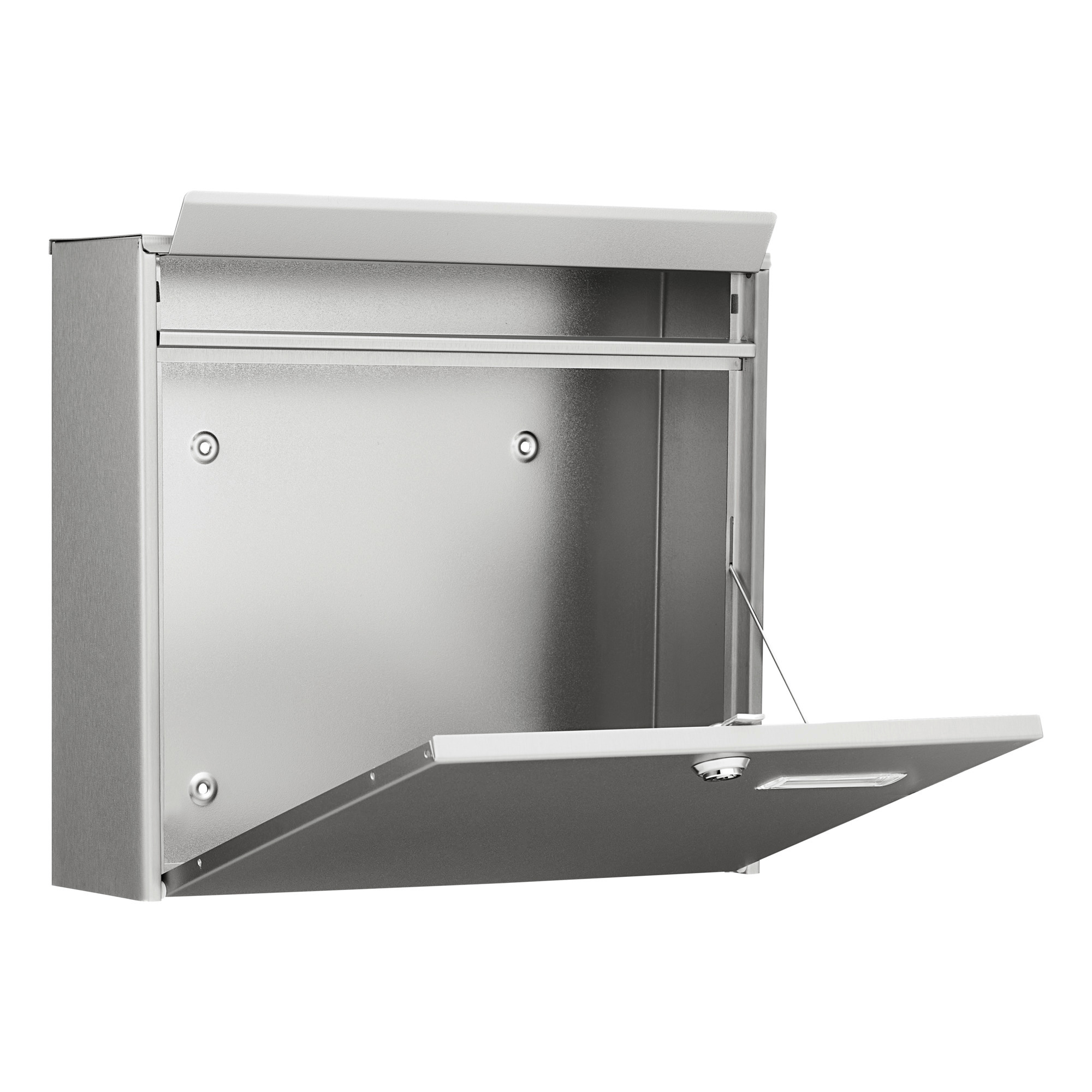 Aus rostfreiem EdelstahlMit transparentem Schutzlack versiegeltMade in GermanySehr hohe KorrosionsbeständigkeitErhöhter Schutz bei Diebstahlund AufbruchsicherheitMit ÖffnungsstoppLieferung mit zwei SchlüsselnGeprüft nach Norm EN 13724Einwurf DIN C4