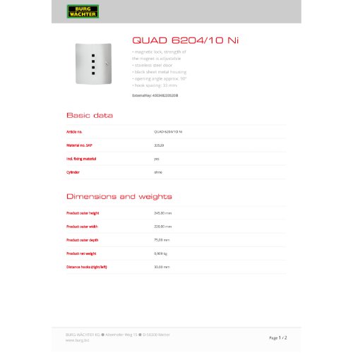 Hersteller: BURG-WÄCHTER GmbH & Co. KG, Altenhofer Weg 15, 58300 Wetter (Ruhr)